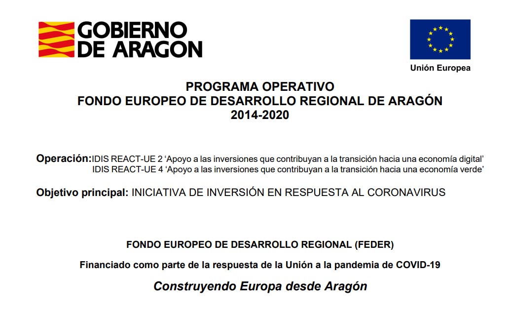 En los últimos años, estamos involucrados en la mejora de nuestros procesos, buscando soluciones digitales y de economía verde, habiendo participado en las iniciativas del Gobierno de Aragón a través del Fondo Europeo de desarrollo regional (FEDER), mediante el “Apoyo a las inversiones que contribuyan a la transición hacia una economía digital y economía verde” del Programa Operativo Fondo Europeo de Desarrollo Regional de Aragon.